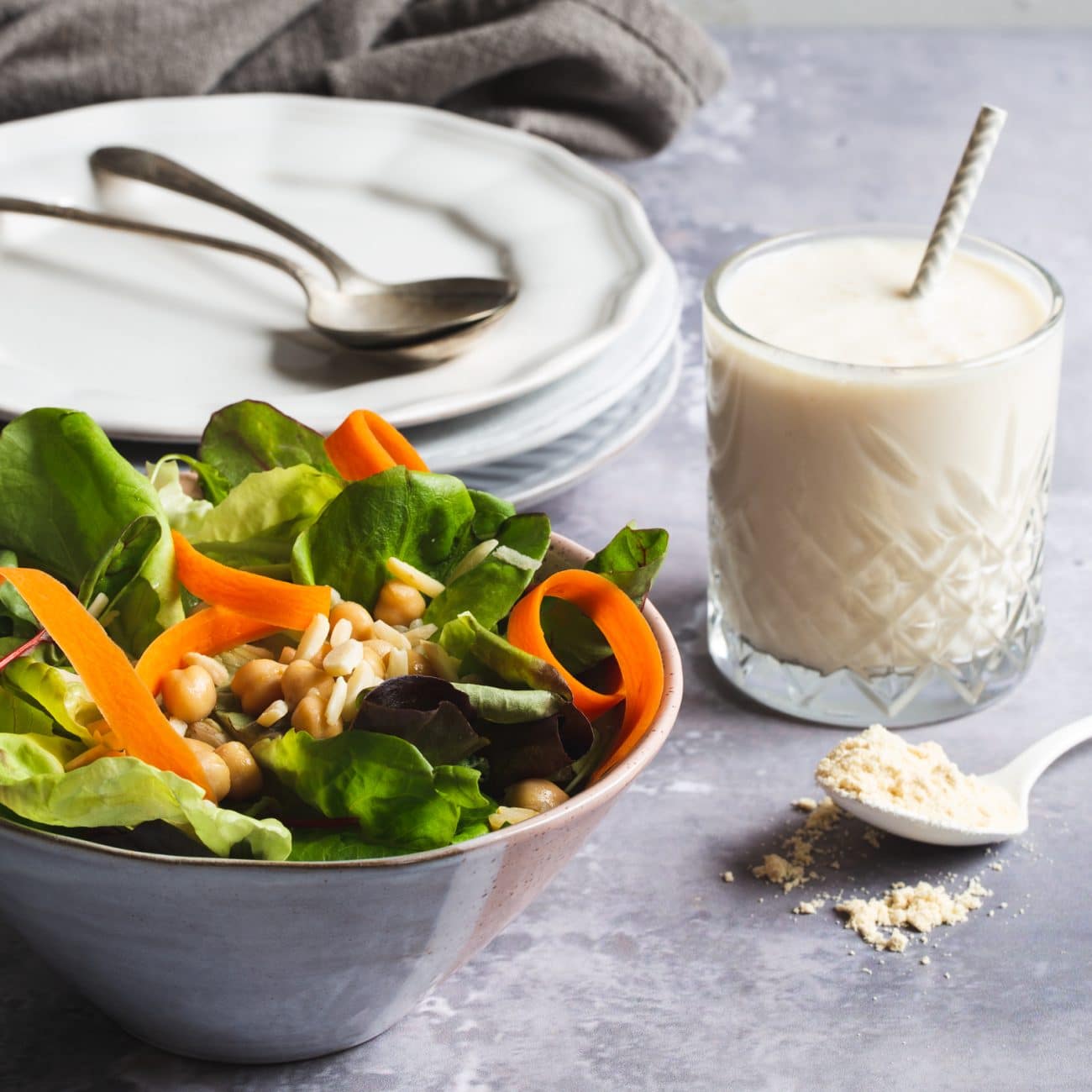 Oder kombiniere Protein-Getränkemix Vegan mit Formula 1 für eine gesunde Mahlzeit, die laktosefrei und 100 % vegan ist und Protein, Ballaststoffe, Vitamine und Mineralstoffe in einer perfekt ausgewogenen Mischung enthält.